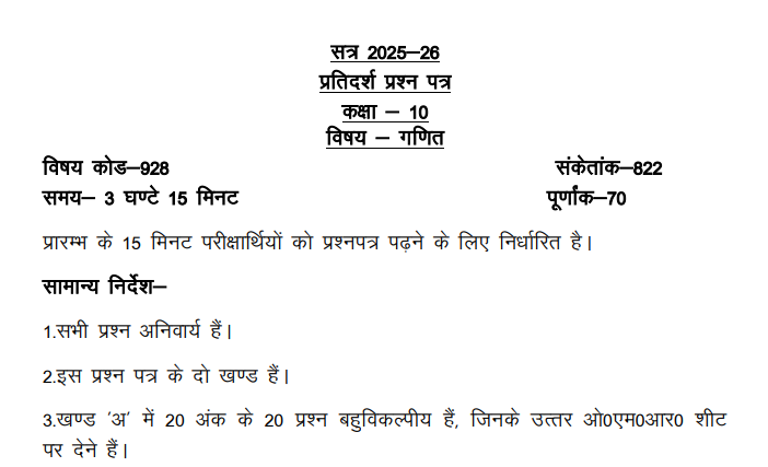 27 फरवरी UP Board Math paper class 10 Model PaperClick Here
